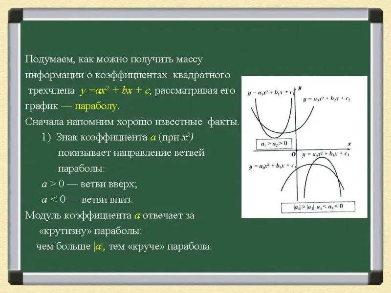 1) Знак коэффициента а (при х2) показывает направление ветвей параболы: