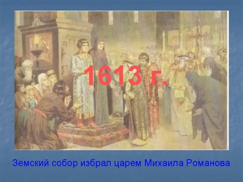 Ответ: Земский собор избрал царем М.Романова. Это произошло в 1613 г.