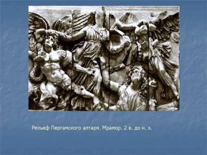 - Рельеф Пергамского алтаря. Мрамор. 2 в. до н. э.