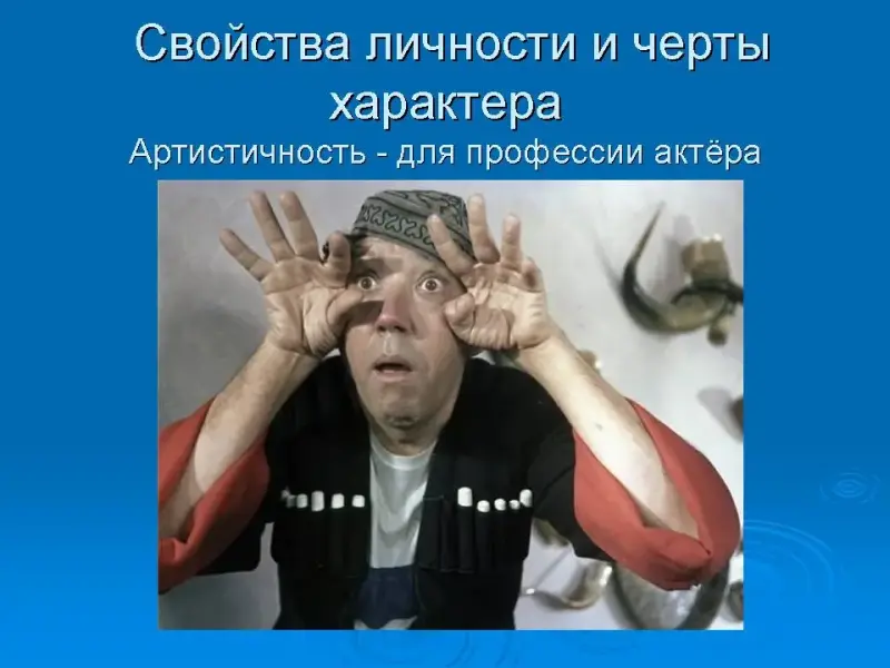 - свойства личности и черты характера (ответственность, артистичность, коммуникабельность, интересы и др.);
