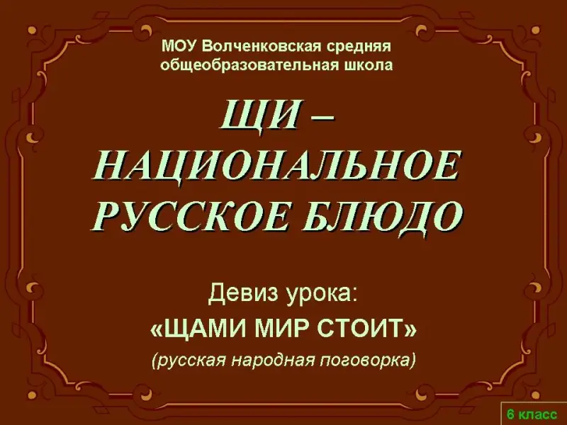 Девиз урока: «Щами мир стоит» (русская народная поговорка).