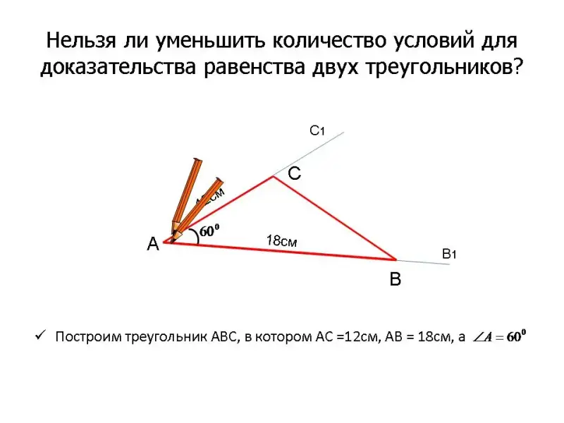 - Нельзя ли уменьшить количество условий для доказательства равенства двух треугольников?