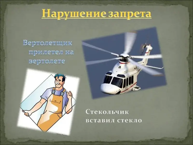 Вертолётщик прилетел на вертолёте. Стекольчик вставил стекло.