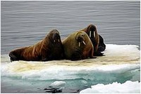 - Назовите экологическую проблему, выраженную на третьем рисунке. (Неумеренная охота привела к тому, что белые медведи и моржи стали редкими?)