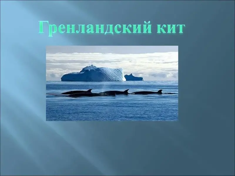 - В водах северных морей, где проходят теплые течения, обитает великолепное животное - гренландский кит (Рисунок 9).