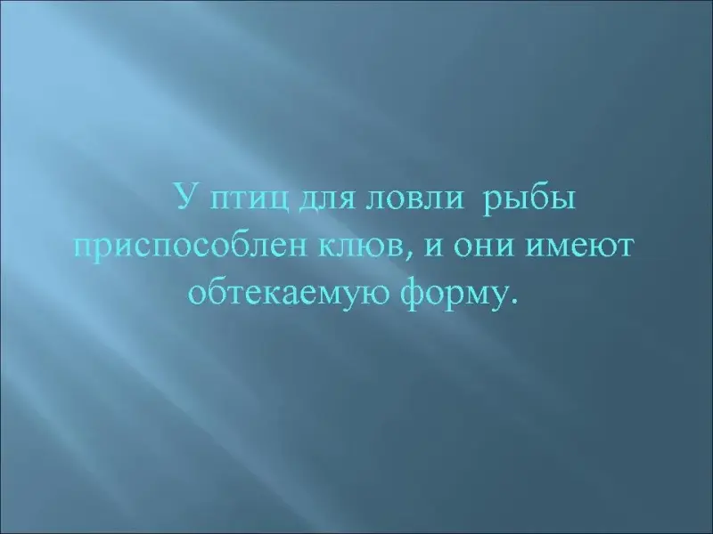 2. У птиц для ловли рыбы приспособлен клюв, и они имеют обтекаемую форму.