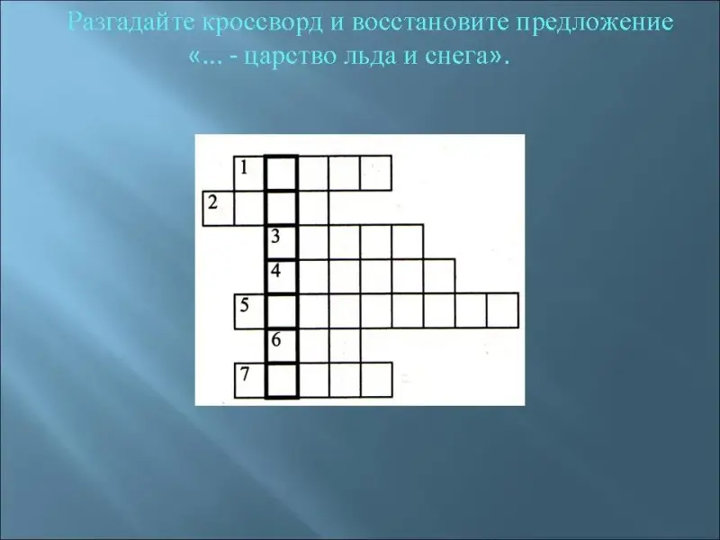 - Разгадайте кроссворд (Рисунок 13) и восстановите предложение "... - царство льда и снега".