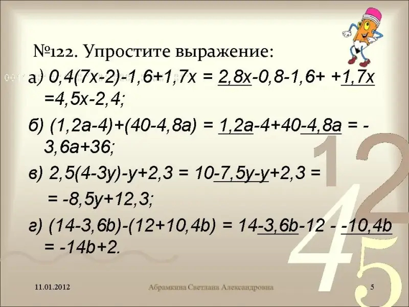 5x = -60; x = -60:5; x = -12. Ответ: - 12. |