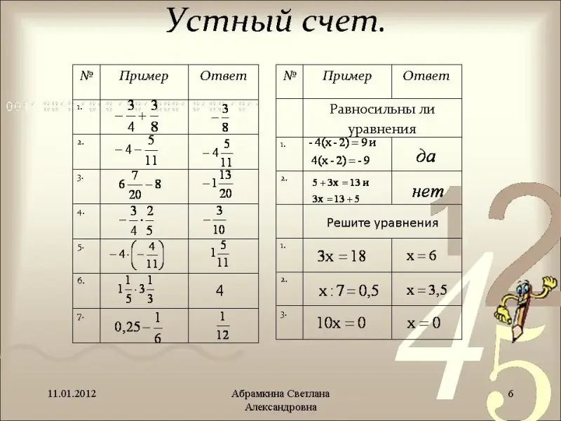 3. Устный счет. (слайд №6)
