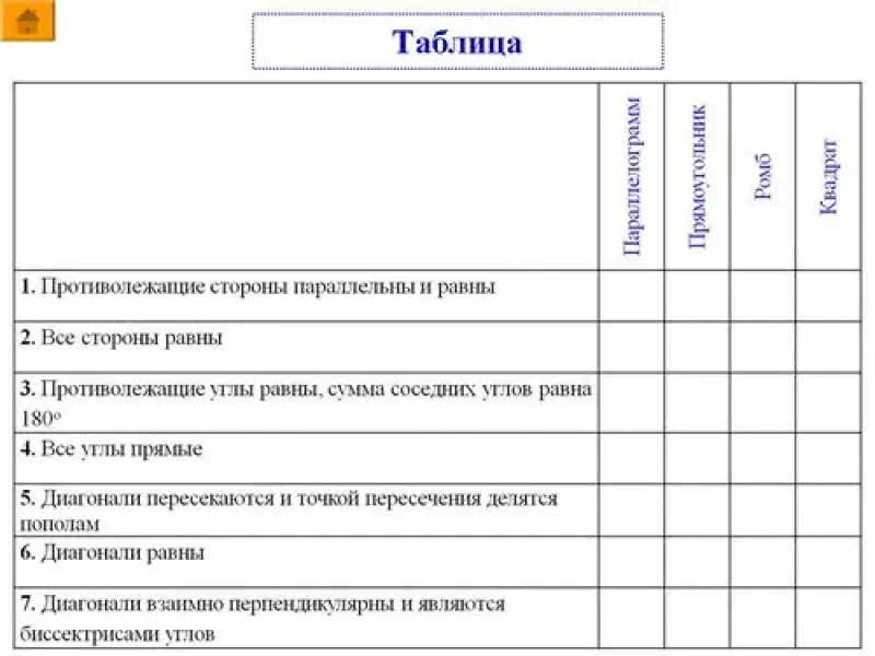 повторить: определение, свойства, признаки прямоугольника/квадрата/ромба;