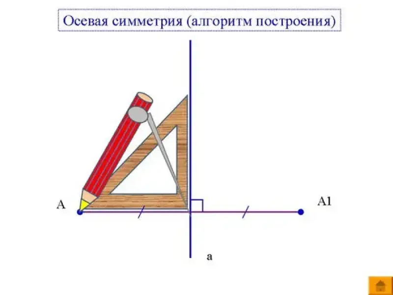 - Точек симметричных относительно прямой. Оси симметрии. (Презентация. Слайд 14, 15)