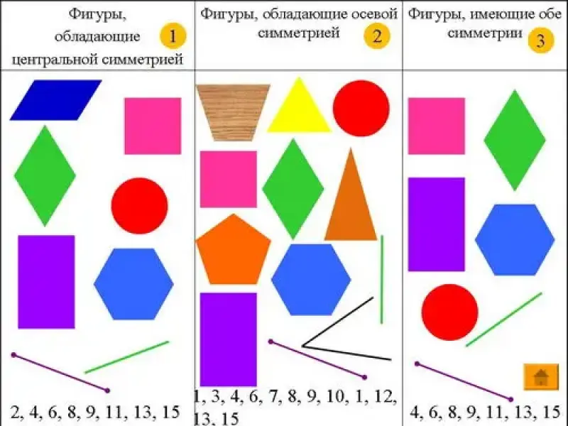 - Приведите примеры фигур, обладающих осевой/центральной симметриями.