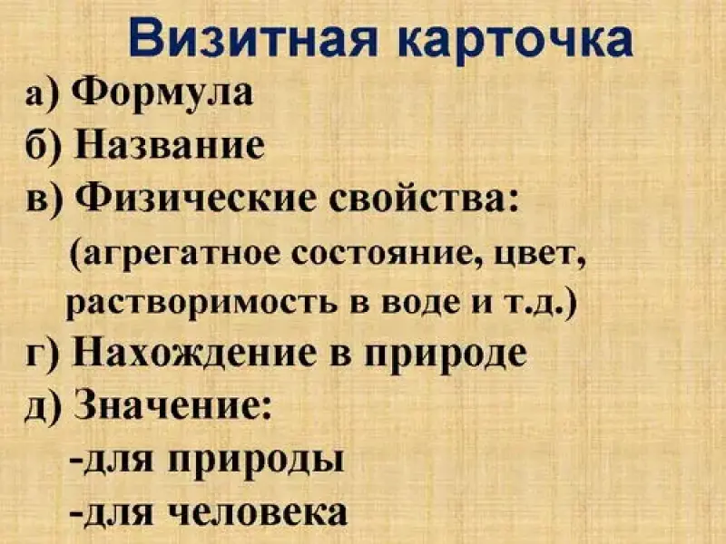 Ваша задача - составить визитную карточку оксида, по плану (Слайд 3):