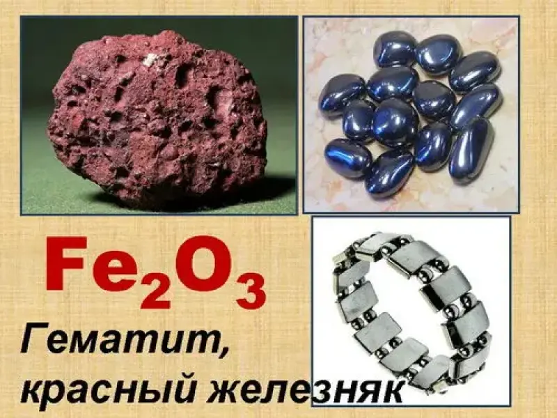 - Какими оксидами они образованы? (кварц, яшма - диоксидом кремния, красный железняк - триоксидом железа, бурый железняк - триоксидом железа и несколькими молекулами воды, магнитный железняк - смесью триоксида железа диоксида железа)