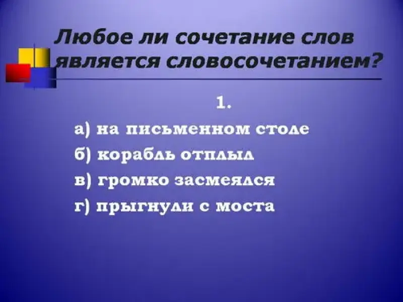 Выполните тестовые задания. Укажите варианты, в которых отсутствуют словосочетания.