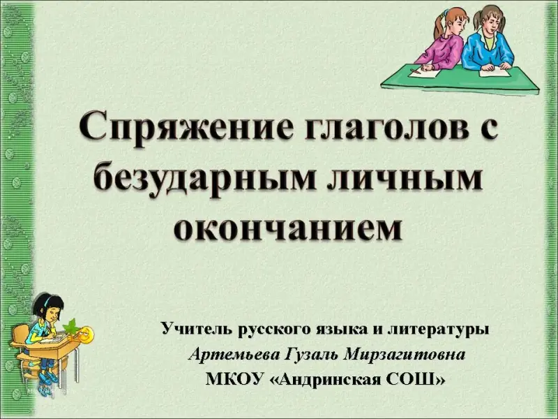Гид: Как же определить спряжение глагола с безударным личным окончанием? (Учащиеся выдвигают свои гипотезы по проблемному вопросу.) (Слайд 12)