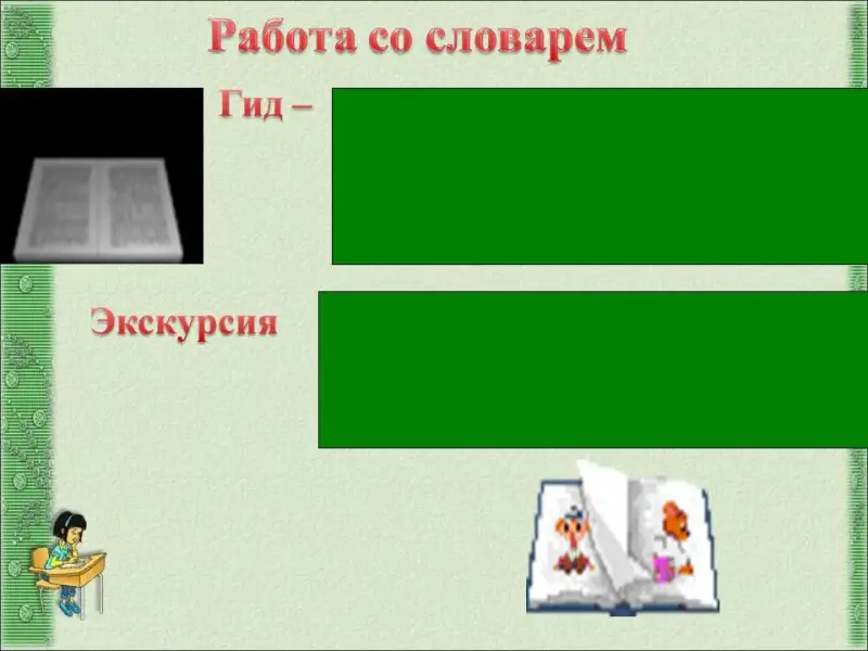 Учитель: А теперь я хочу пригласить вас на экскурсию. Но экскурсия эта не совсем обычная. Она поможет нам лучше познакомиться с городом, который мог бы существовать в вымышленной