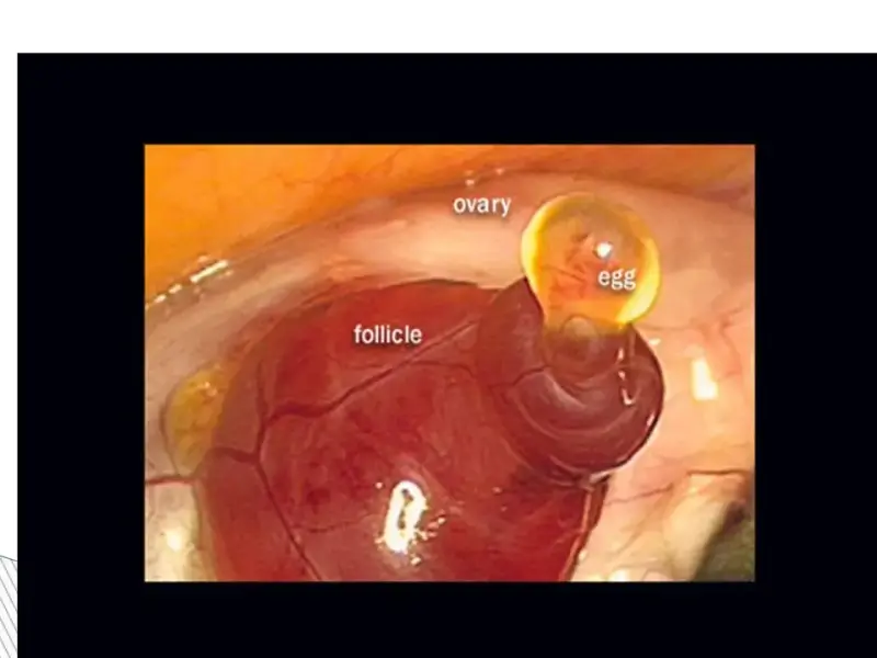 Фолликулы имеют разный размер от микроскопических до 1 см. Крупные фолликулы - предовуляторные, т.е. готовые к овуляции. Обычно в менструальном цикле женщины созревает один фолликул, реже 2 или 3. Фолликул созревает к середине менструального цикла женщины. В этот момент под действием большого количества гормонов гипофиза и яичников происходит разрыв фолликула, и яйцеклетка выходит в брюшную полость. В период своего роста (до момента овуляции) фолликул становится эндокринной железой - он вырабатывает большое количество женских половых гормонов - преимущественно, эстрогены. После овуляции фолликул резко меняет свою структуру и трансформируется в желтое тело - оно начинает вырабатывать прогестерон - гормон второй фазы менструального цикла. Прогестерон - это и основной гормон беременности. Поэтому если происходит оплодотворение овулировавшей яйцеклетки, то желтое тело увеличивается в размерах и поддерживает уровень прогестерона до тех пор, пока эту функцию не возьмет на себя плацента (т.е. до 12 недель беременности). Если же оплодотворение не произошло, желтое тело постепенно угасает. На 28-ой день, количество гормонов резко снижается - начинаются очередные месячные. Далее цикл повторяется сначала - и так на протяжении всего репродуктивного периода в жизни женщины.