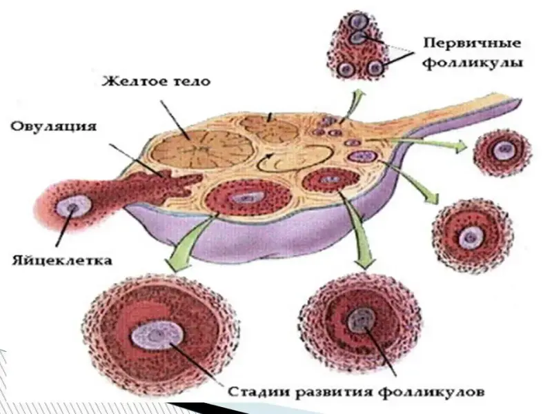 Яичники имеют два слоя - корковый и строму. В корковом веществе происходит созревание фолликулов, которые содержат яйцеклетки (женские половые клетки).