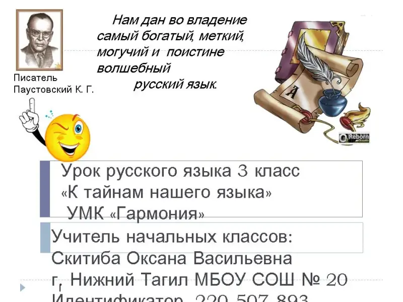 Начнем урок со слов писателя К. Г. Паустовского "Нам дан во владение самый богатый, меткий, могучий и поистине волшебный русский язык".