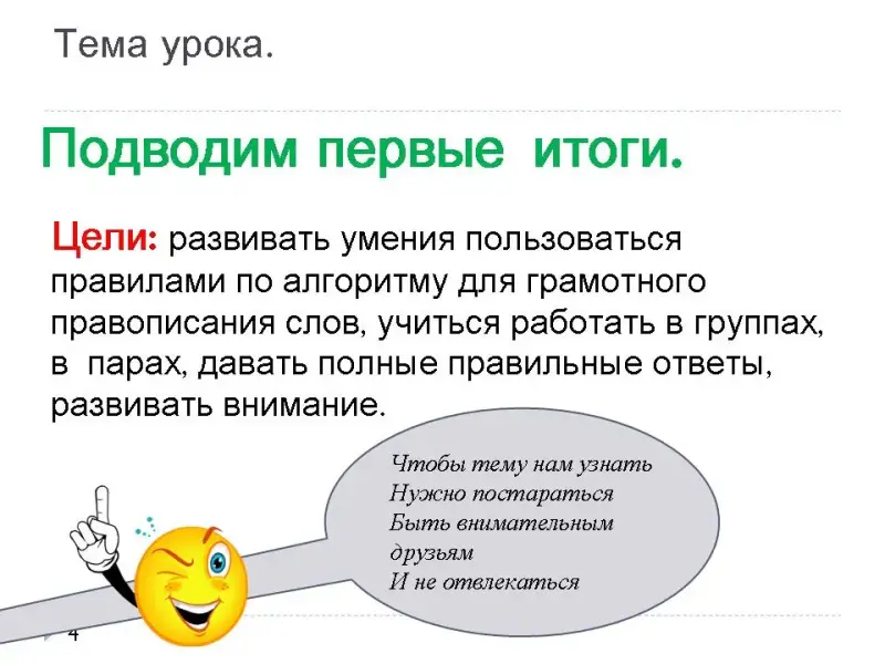 Тема урока: "Подводим первые итоги".
