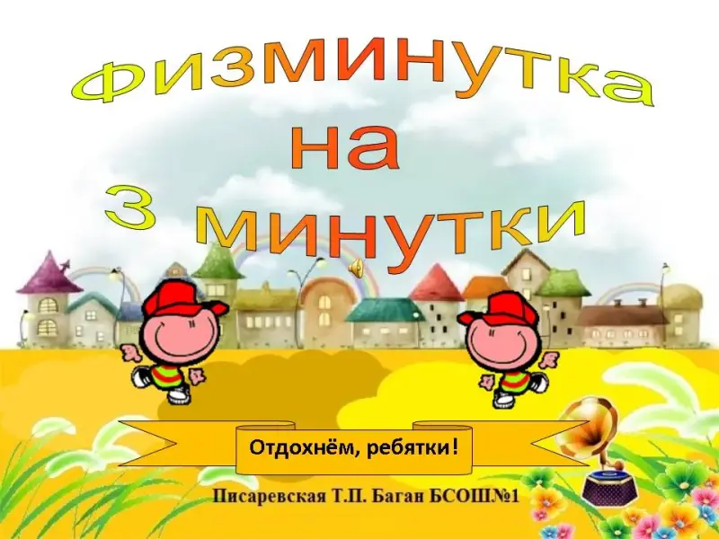 Переход в 6 слайде по ссылке "физминутка" Физминутка (автор физминутки Писаревская Т. П. Баган БСОШ № 1) Приложение 3