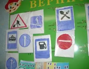 Цель: повторить дорожные знаки, учить рисовать их, знать, почему они бывают синего, красного, желтого цветов, аккуратно выполнять работу.