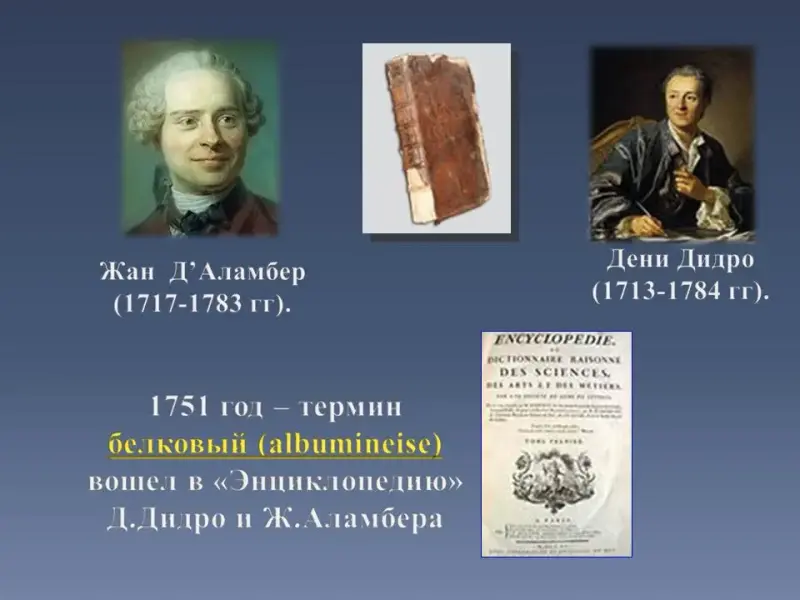Слайд 10. 1751 год термин белковый вошел в "Энциклопедию" Д.Дидро и Ж.Аламбера.