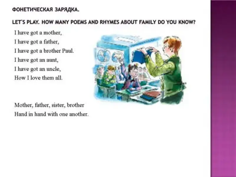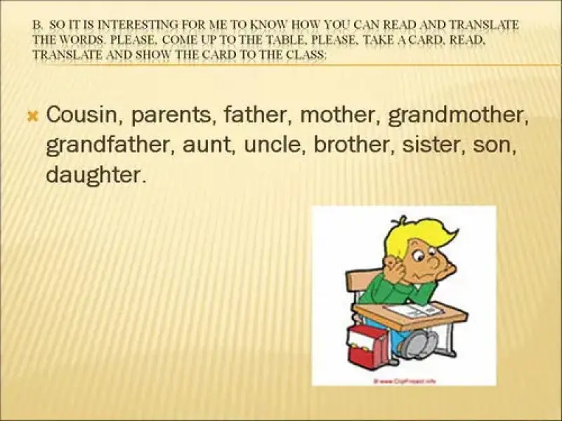 Yes, right you are. So, the topic of our lesson is "Family". We have a lot of things to do.