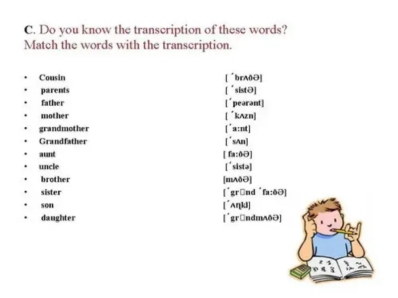C. Do you know the transcription of these words? Match the words with the transcription.