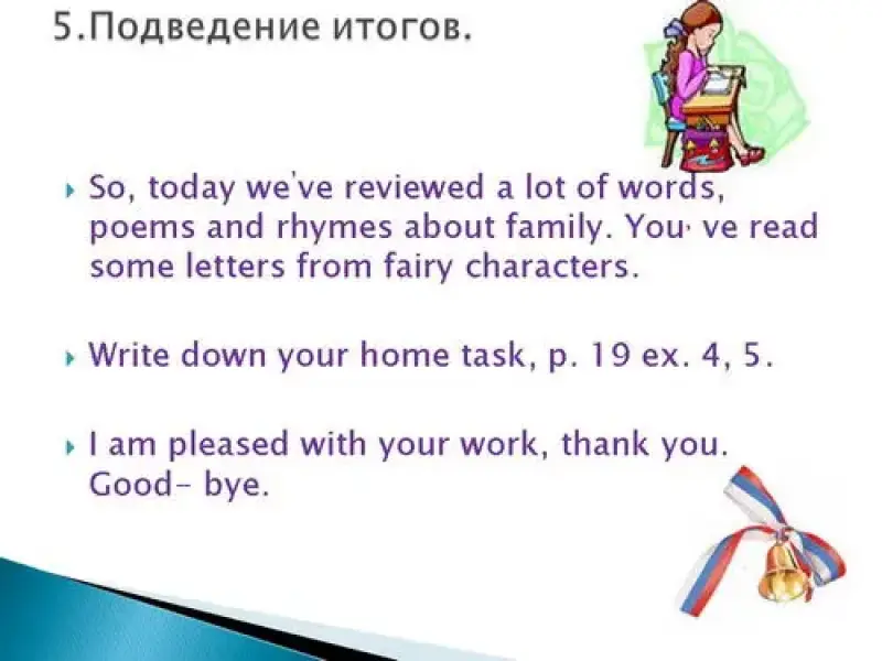 So, today we've reviewed a lot of words, poems and rhymes about family. You, ve read some letters from fairy characters.