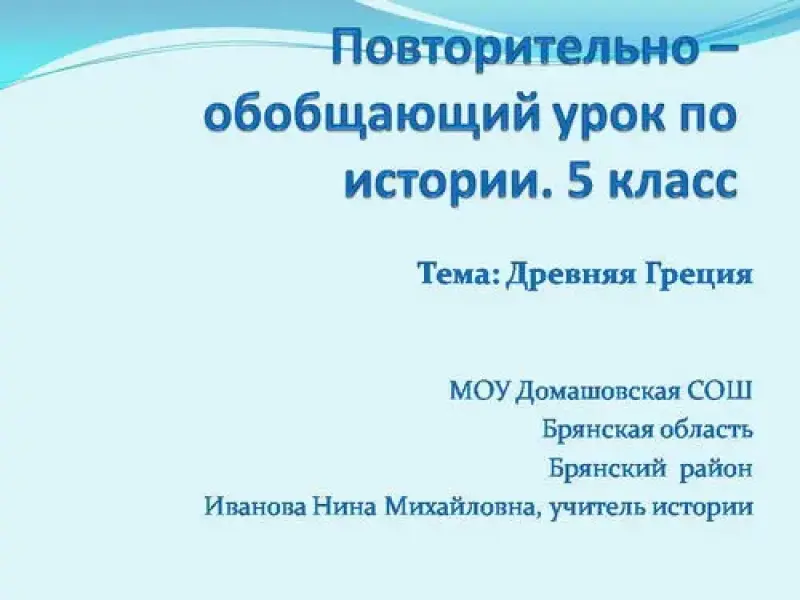 - обобщить и систематизировать знания об истории Древней Греции;