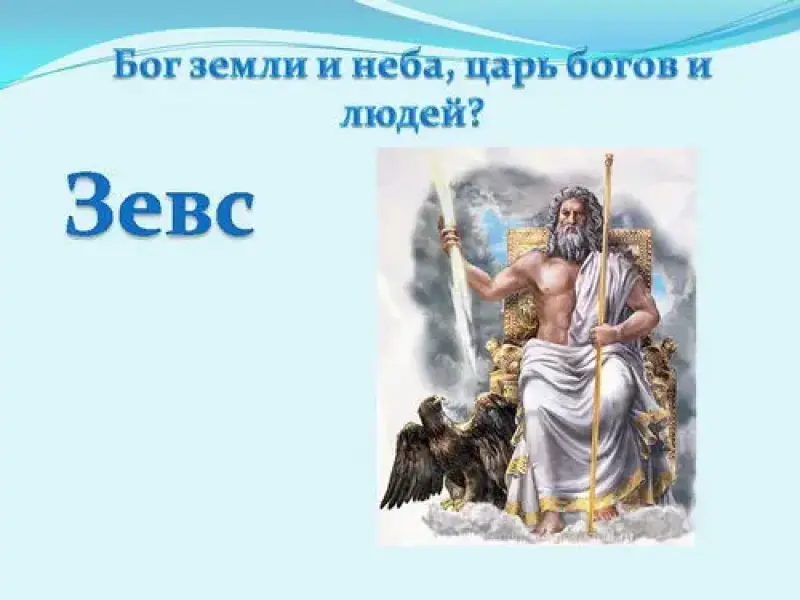 - Бог земли и неба, царь богов и людей? (Зевс).