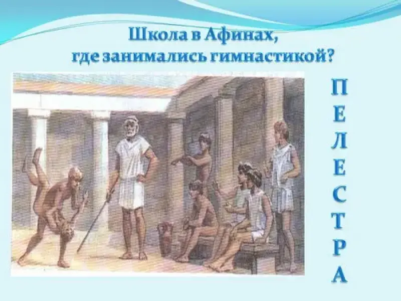 - Школа в Афинах, где занимались гимнастикой? (Палестра).