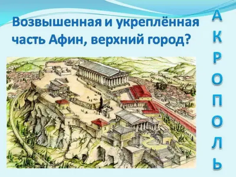 - Возвышенная и укреплённая часть Афин, верхний город? (Акрополь).