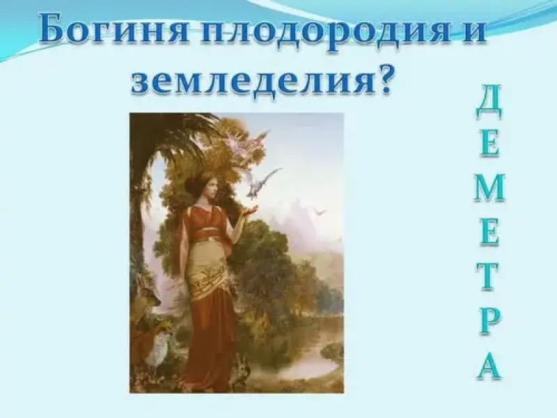 - Богиня плодородия? (Деметра).