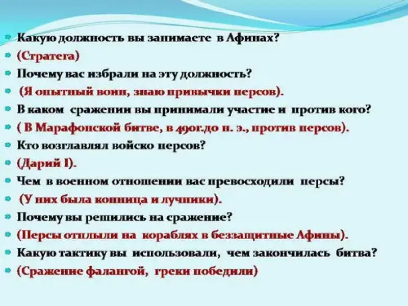 - Почему вы решились на сражение? (персы отплыли на кораблях в беззащитные Афины).