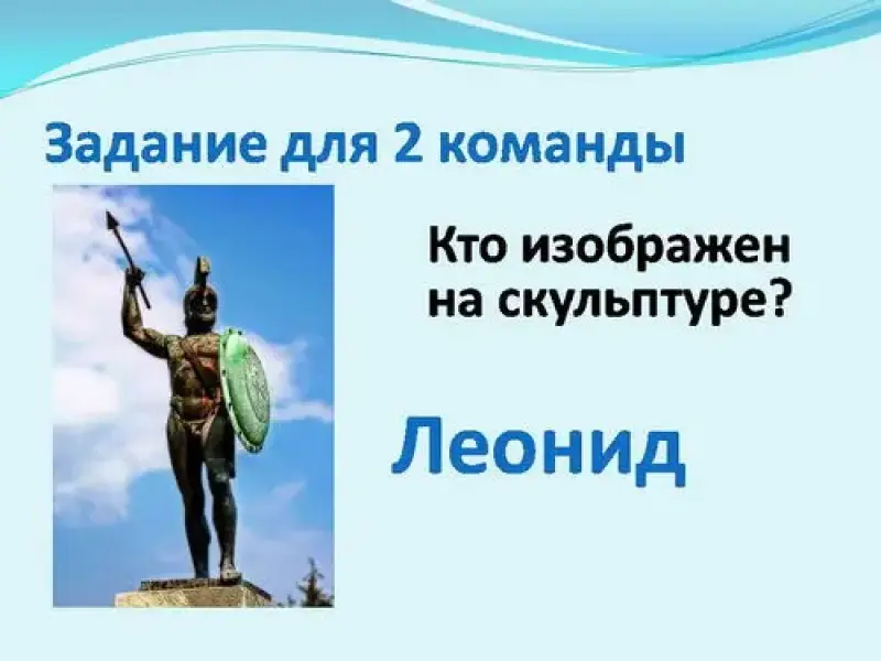 - Кто изображён на скульптуре? (Леонид.)