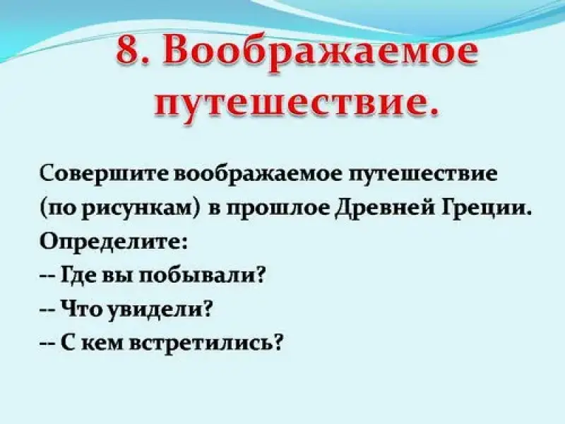 - Воображаемое путешествие.