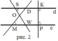 | Назвать расстояние между параллельными прямыми c и d. (Работа с рисунком №2) | Расстояние между параллельными прямыми c и d равно РК | ![]() |