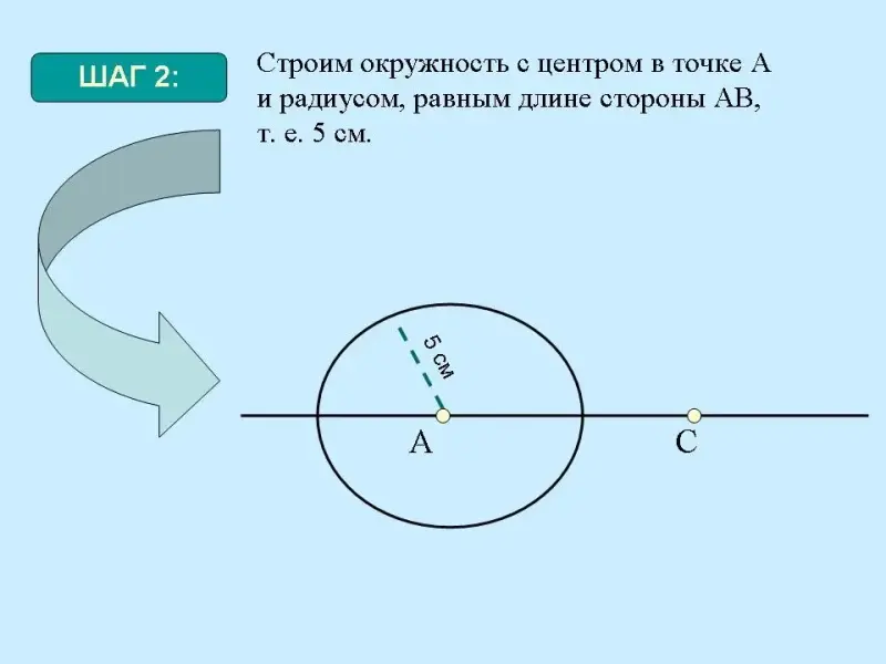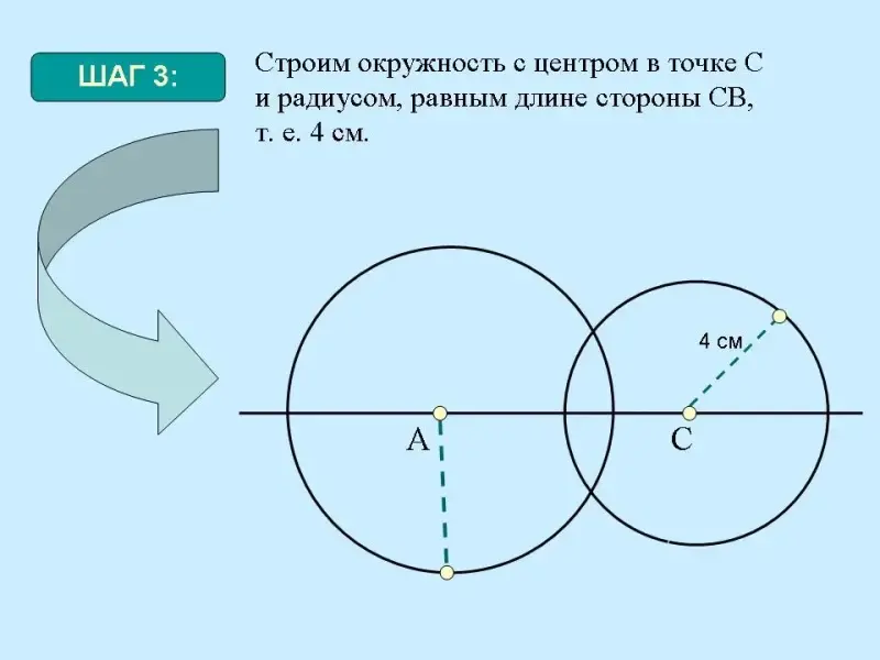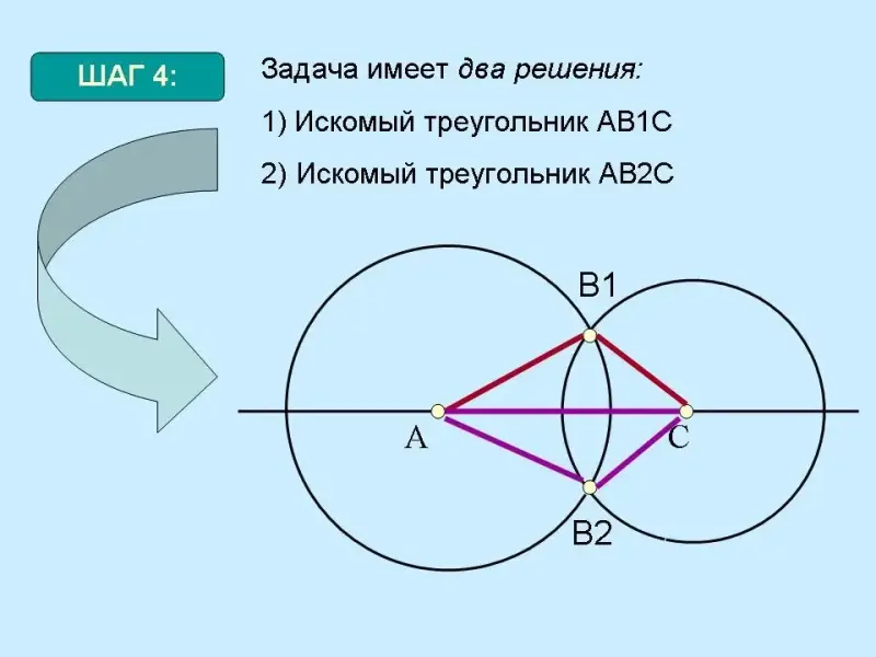 3) Учитель предлагает посмотреть учащимся презентацию о решении задачи №3 (Построение треугольника по трем сторонам)