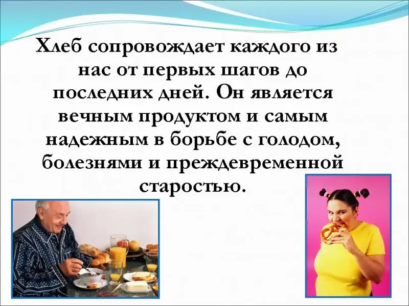 Слайд 2. Хлеб сопровождает каждого из нас от первых шагов до последних дней. Он является вечным продуктом и самым надежным в борьбе с голодом, болезнями и преждевременной старостью.