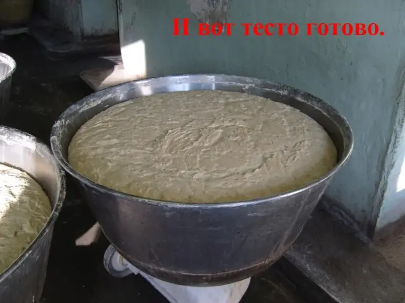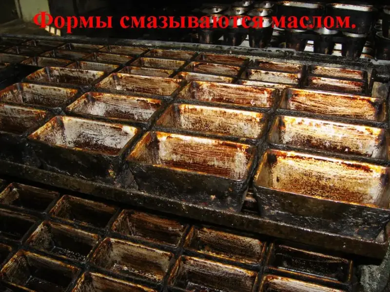 Слайд 13. После расстойки формы с тестом попадают в печь, откуда достают уже готовые буханки.
