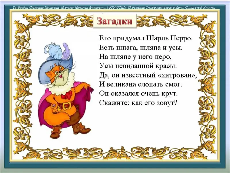 - Загадка про кота в сапогах - http://www.chitalnya.ru/work/446196/