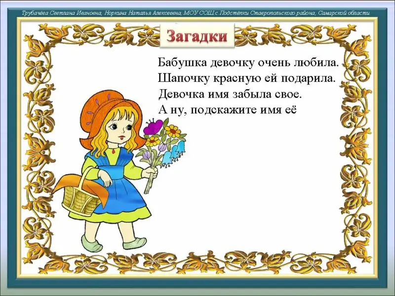 - Загадка про Красную Шапочку http://zagadka.yaxy.ru/zagadki_pro_skazochnih_geroev.html