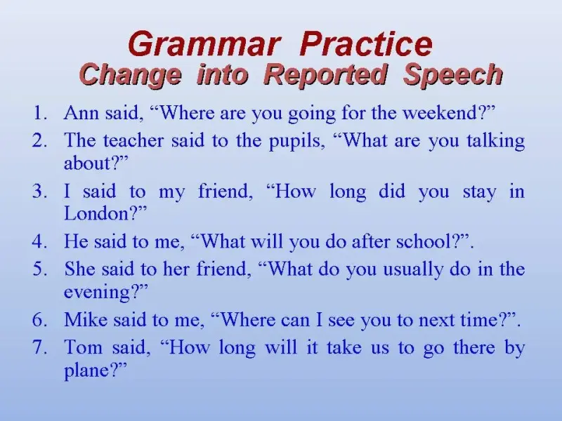 Today at the lesson you will learn to report someone's words in a grammatically correct way, to transform questions into the reported speech and to give commands.