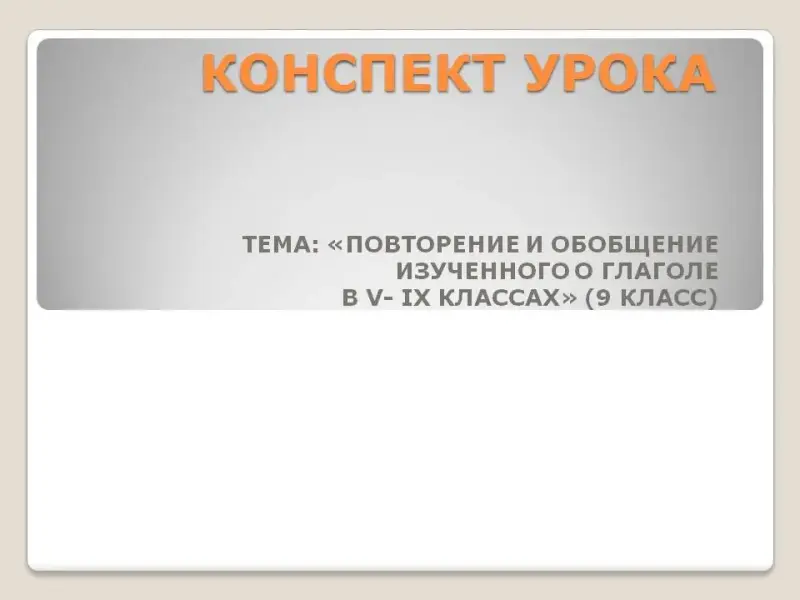 ТЕМА: «ПОВТОРЕНИЕ И ОБОБЩЕНИЕ ИЗУЧЕННОГО О ГЛАГОЛЕ В V- IX КЛАССАХ» (9 КЛАСС)