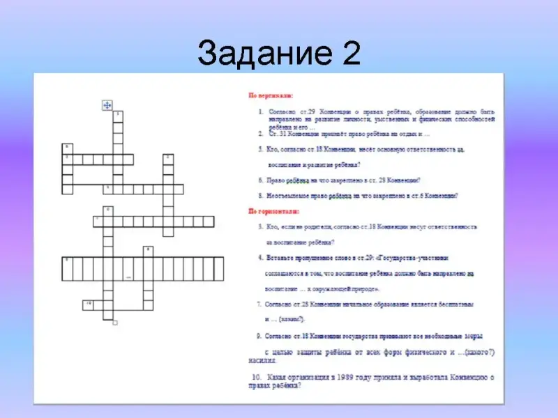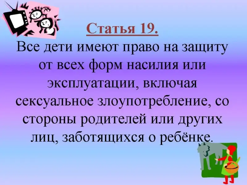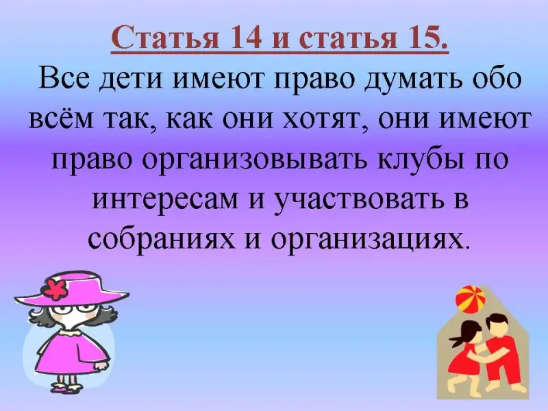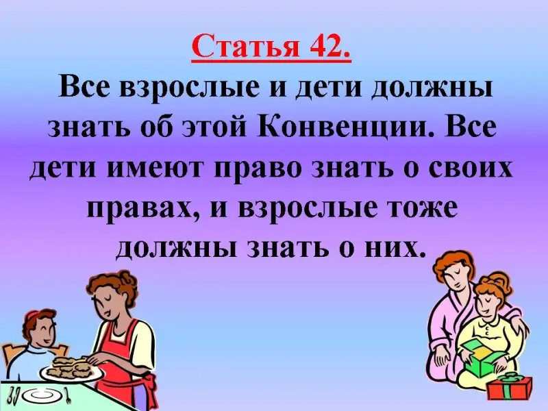 - Знакомство с основными статьями Конвенции о правах ребенка.