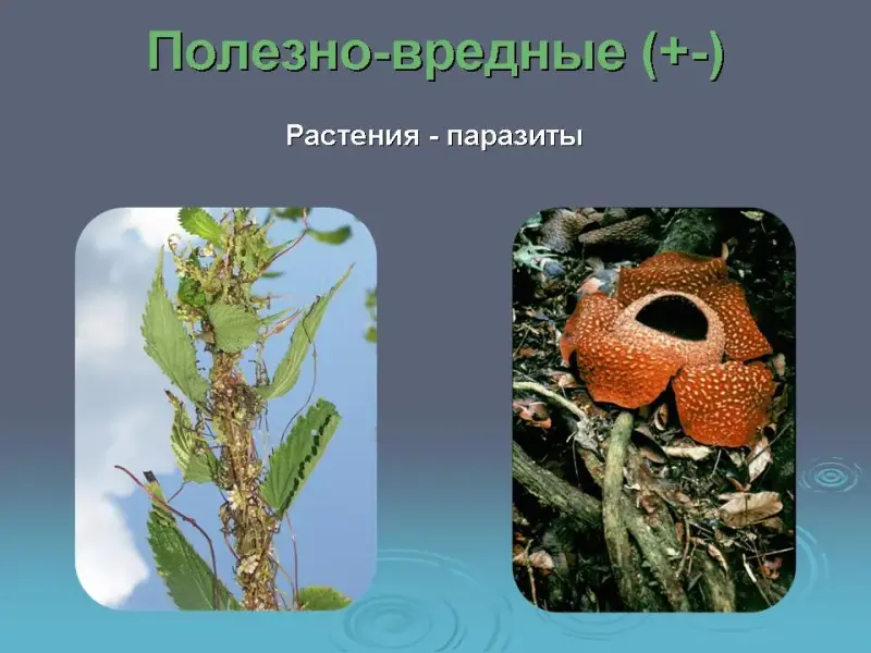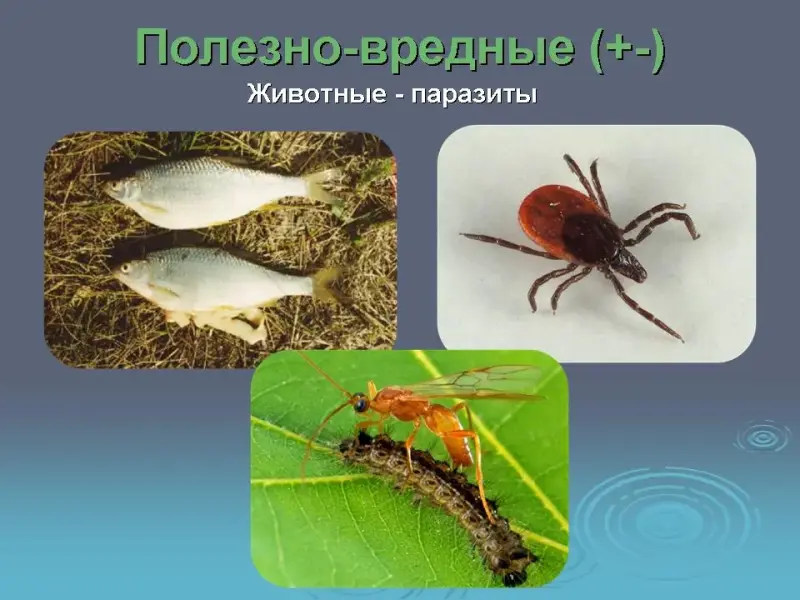 (Слайд 13,14,15) Паразитизм - отношения, при которых представители одного вида используют представителей другого вида не только как место обитания, но и как источник питания.