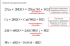 Учитель создает проблемную ситуацию (Слайд 11). Предлагает ученикам вспомнить продукты взаимодействия с водой натрия, кальция и алюминия.
